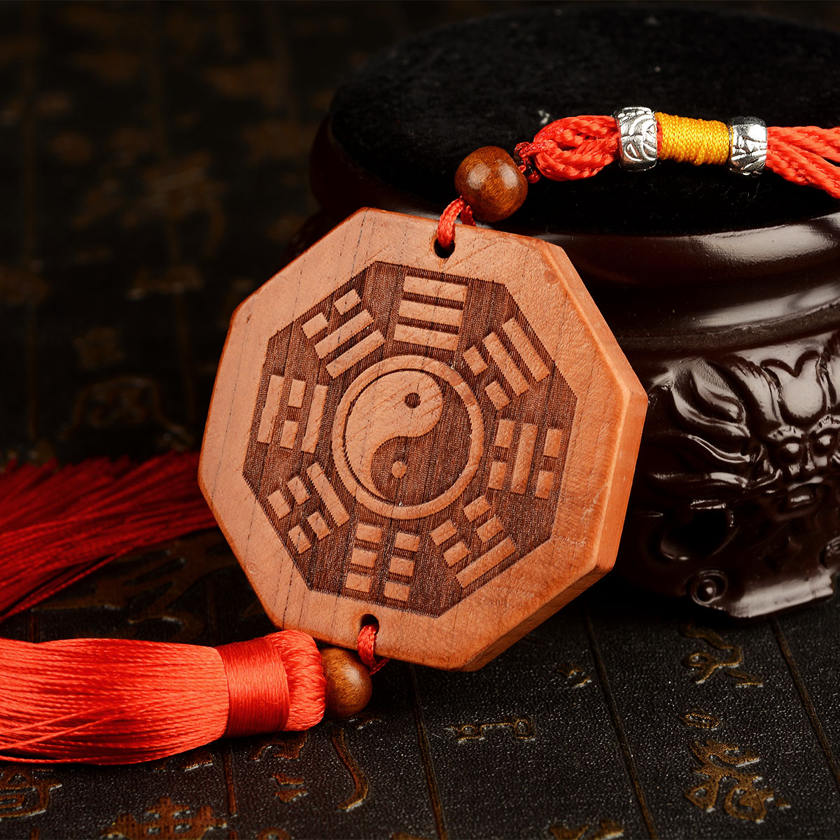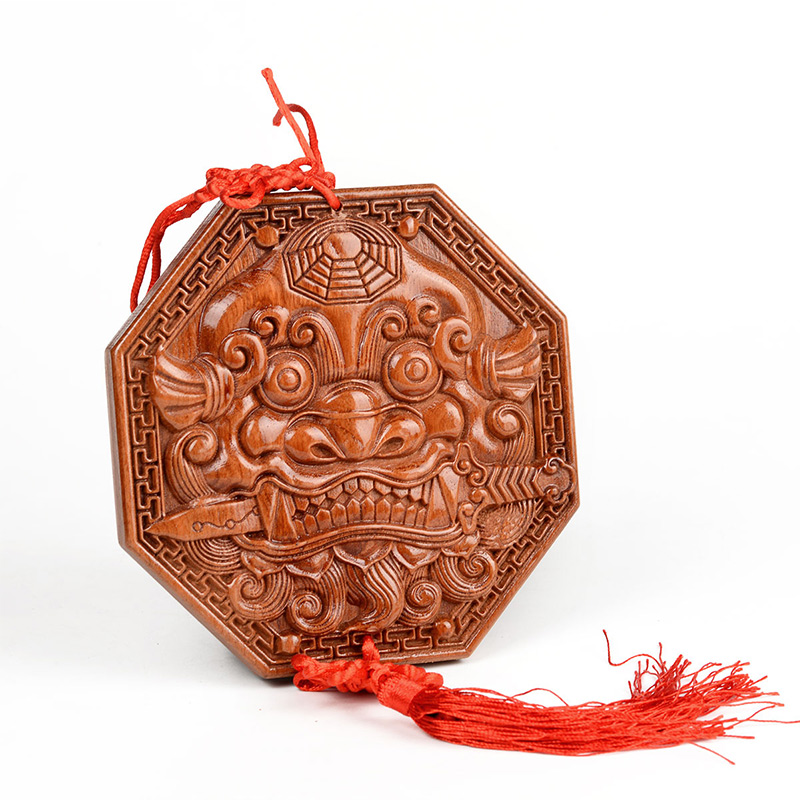 Mahogany animal head mirror Bagua mirror pendant ornament wood carving pendant