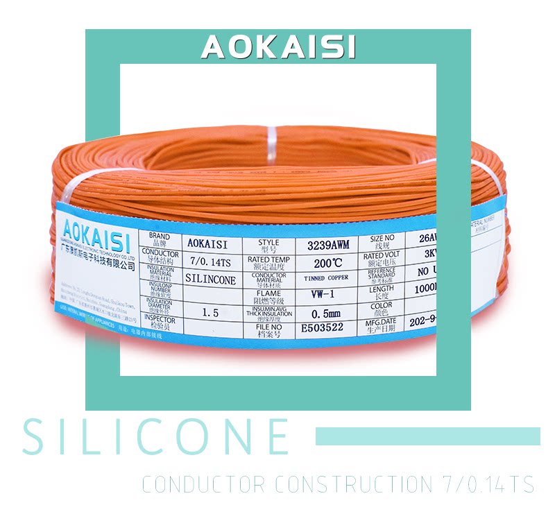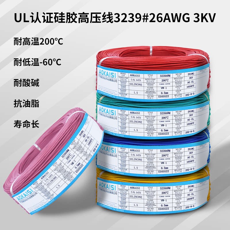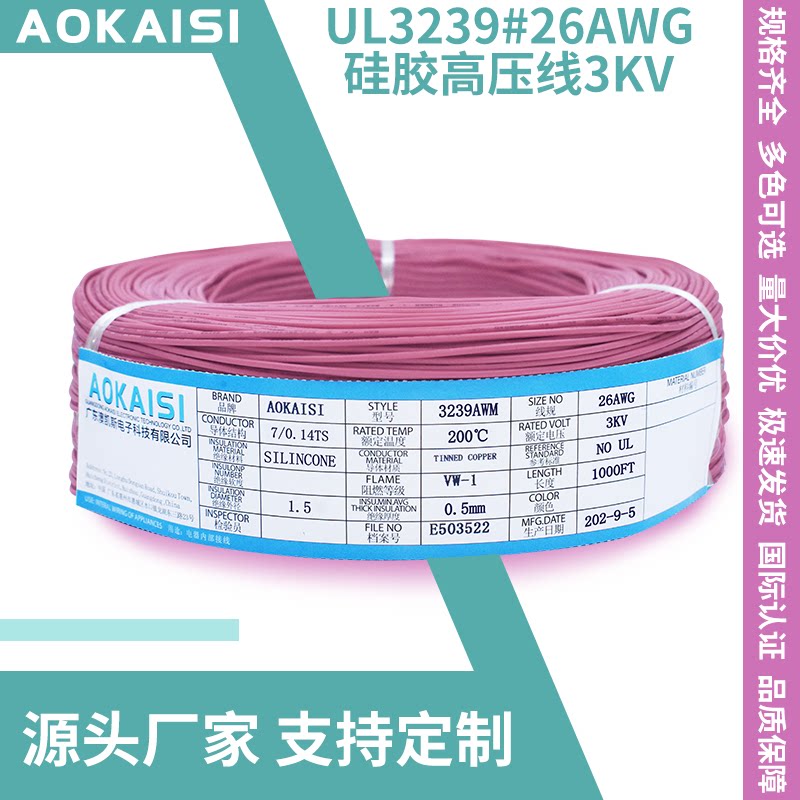 Supply: UL3239#26AWG silicone wire 0 12 square multi-strand soft silicone wire 7 0 15TS high temperature resistant wire