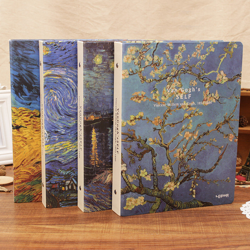 Lionghua loose-leaf version of this flower in English B5 26 holes live page clip hard leather Van Gogh A5 20 holes notebook