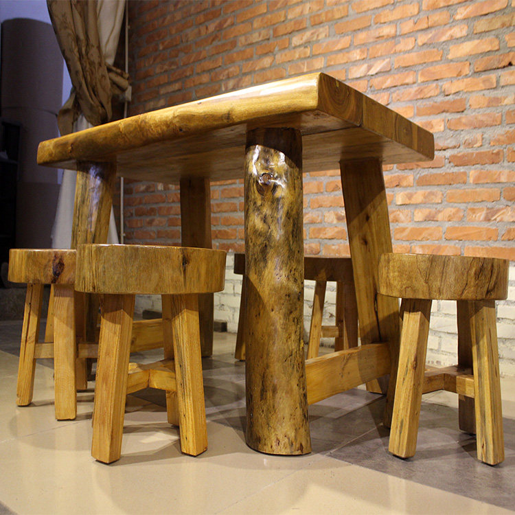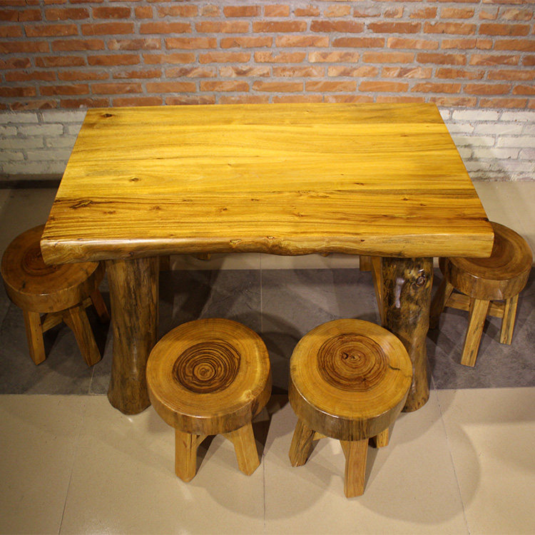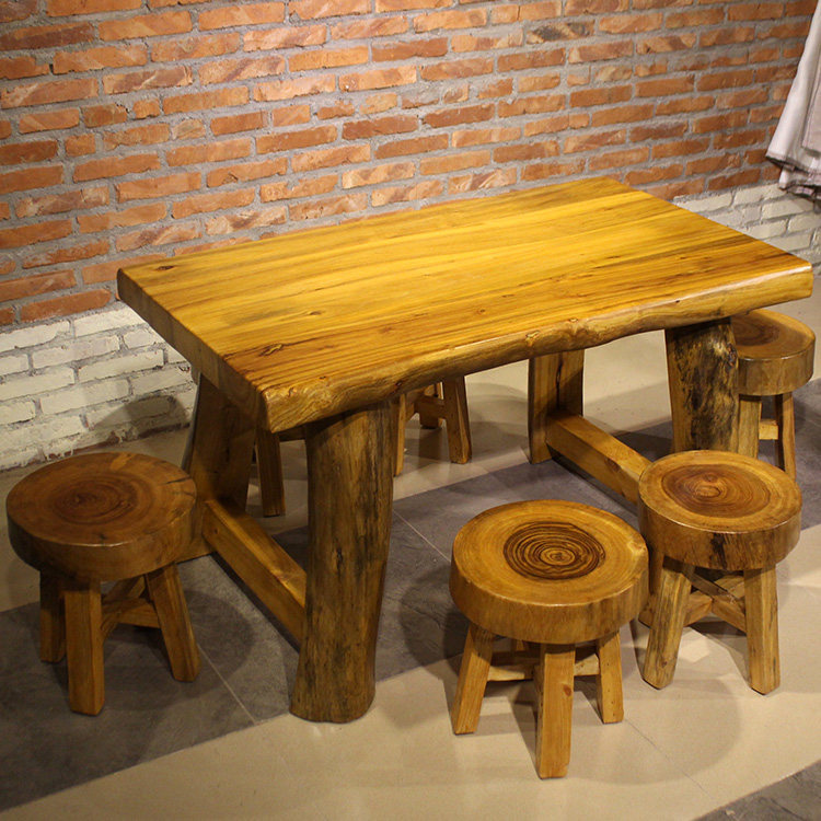 All solid wood furniture camphor wood furniture log pastoral original ecological Chinese rectangular dining table dining table can be customized