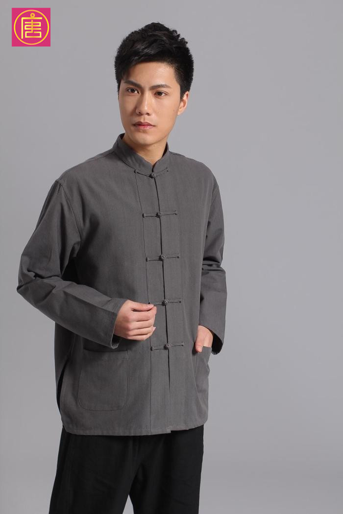 Pure cotton old rough cloth Tang dress long-sleeved men's Chinese shirt shirt Kung fu base shirt Lay clothes spring and autumn Chinese style