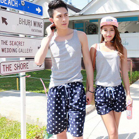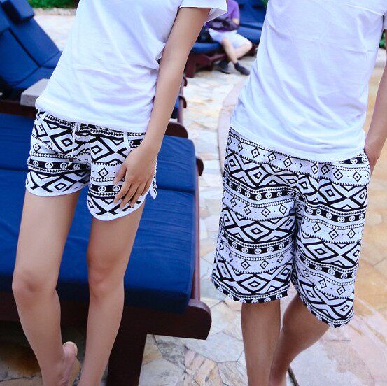 Couple beach pants seaside holiday shorts flower shorts Korean version of quick-drying five-point pants hot pants men's and women's casual pants