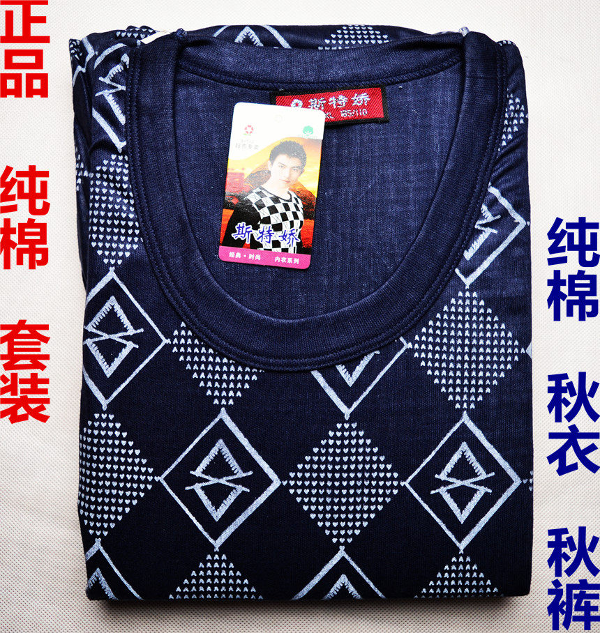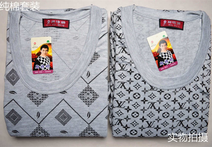 Autumn winter thickened thermal underwear suit men's middle aged high collar cotton sweatshirt large size for autumn clothes sanitary pants