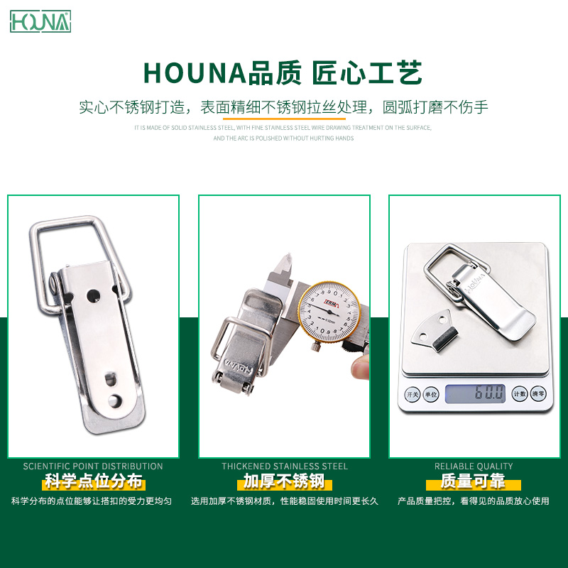 (HOUNA) full 304 stainless steel buckle D102A stainless steel catch 2 Number of flat-mouth buckle buckle lock