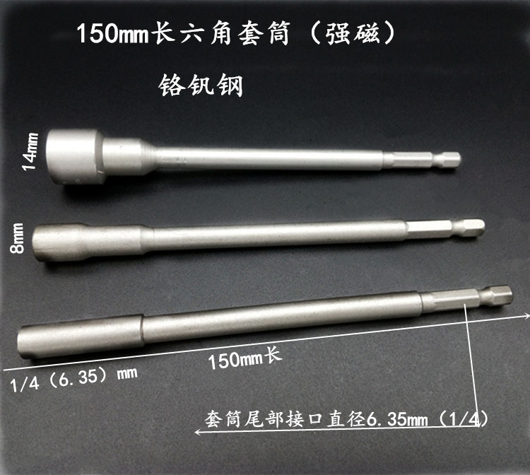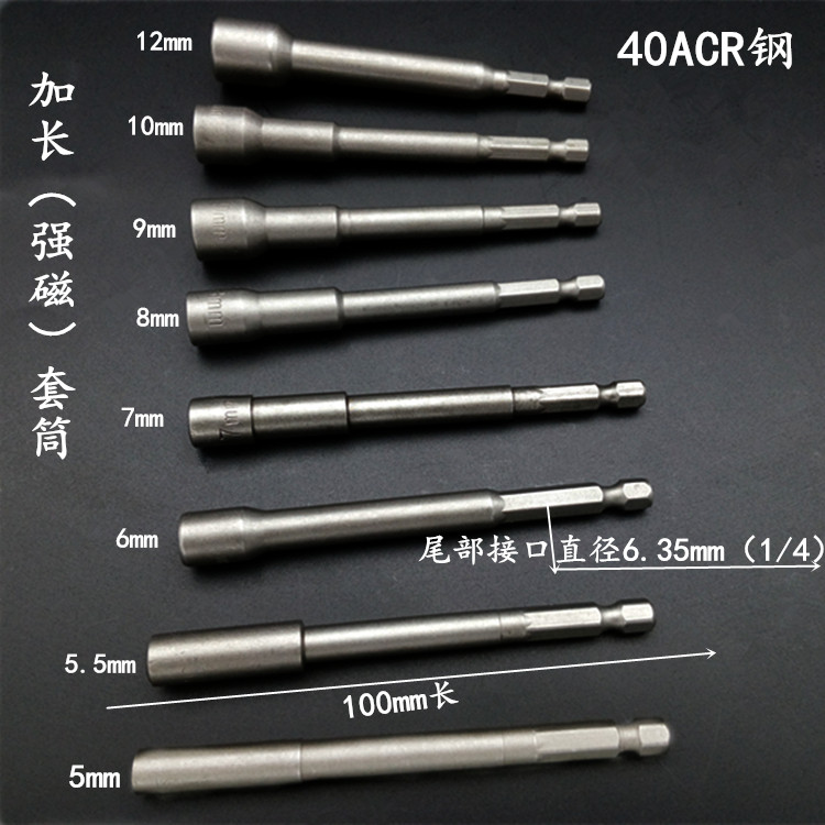 Sleeve strong magnetic lengthened hexagonal sleeve batch head 40ACR material electric pneumatic drilling tail nail lengthened sleeve gagnetism