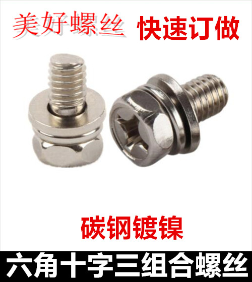 M3M4 hexagonal cross flat play cushion three combined screw plated nickel cross external hexagonal recessed combined screw