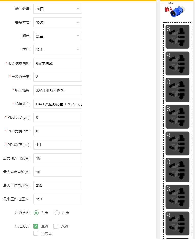 Non-apc with current and voltage display network PDU smart socket 20-port server rack extension cable 16A