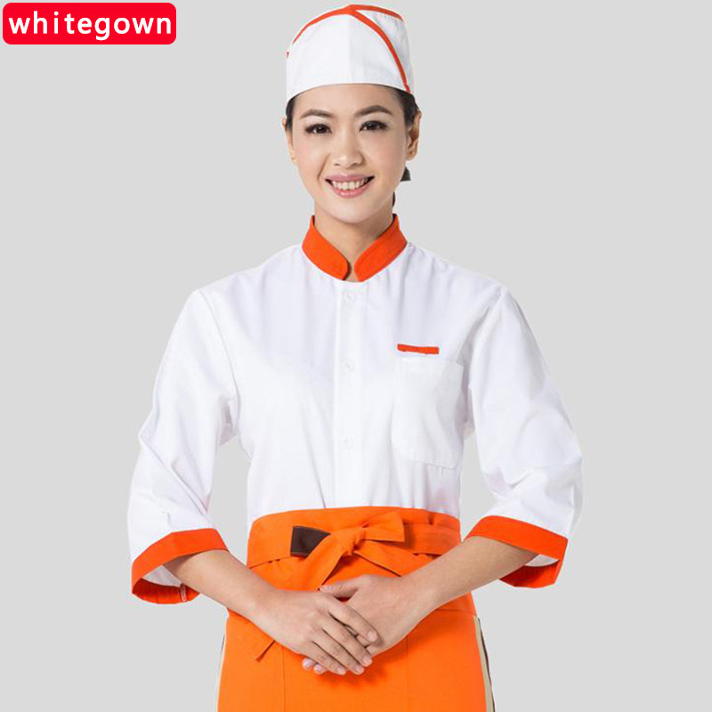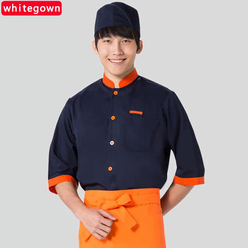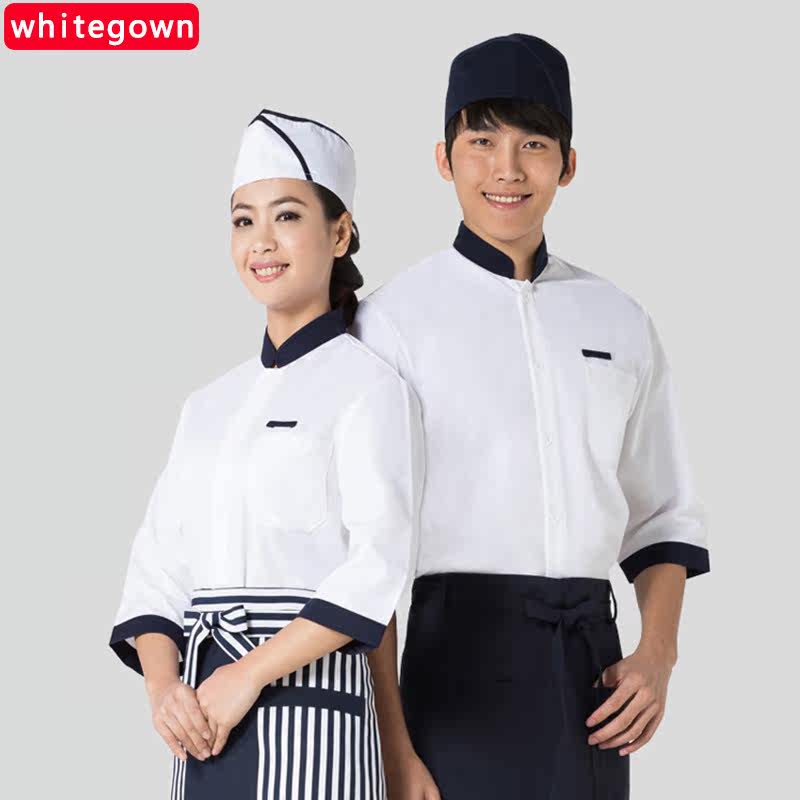 (whitegown) new three-quarter sleeve chef clothes single-breasted short-sleeved men's and women's chef clothes stand collar chef clothes