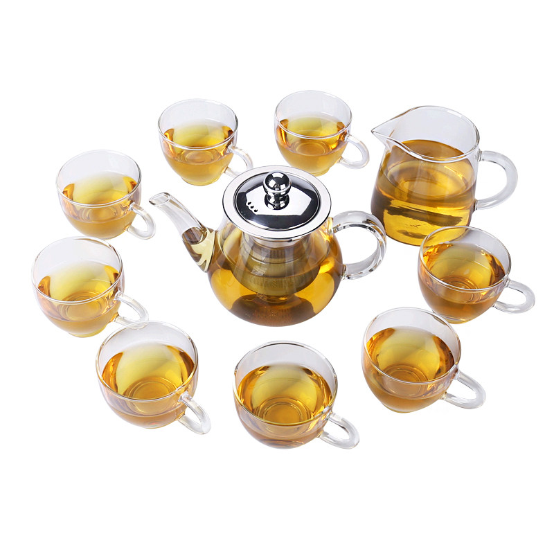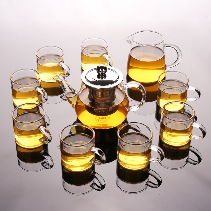 Kang Yun transparent glass tea set household heat resistant kung fu cup simple thickness combined teapot