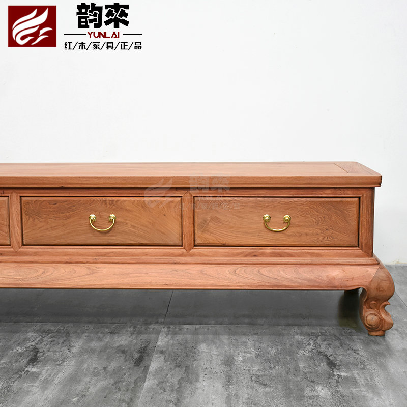 Rhyme to Chinese imitation ancient Myanmar flower pears vegetarian noodles TV cabinet Living room storage TV cabinet Redwood furniture modern