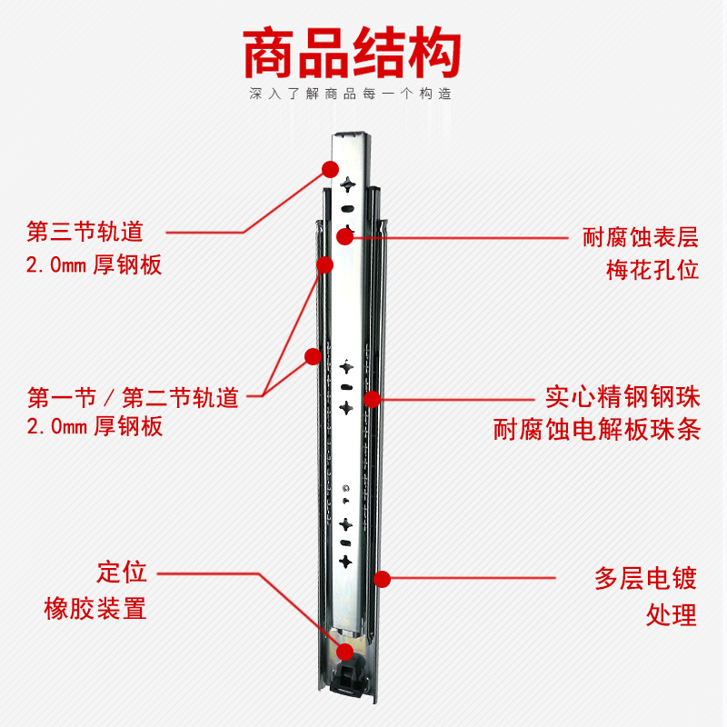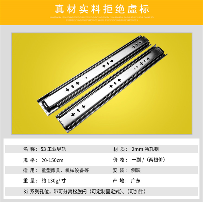 53 Heavy Three Sections Industrial Rail Drawer Silent Ball Bearing Side Mount Rail Enclosure Caravan Self Lock Slide Rail
