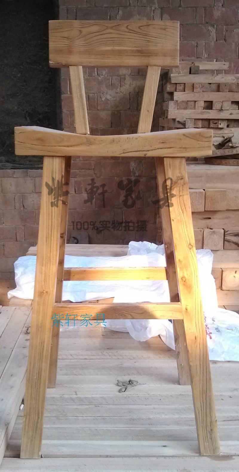 Old Elm Wood Bar Bench Bar Bench Bar Stool Bar Chair Full Solid Wood Old Elm Wood Original Eco Office Backrest High Foot Chair
