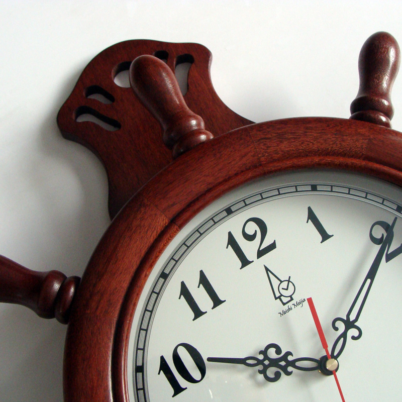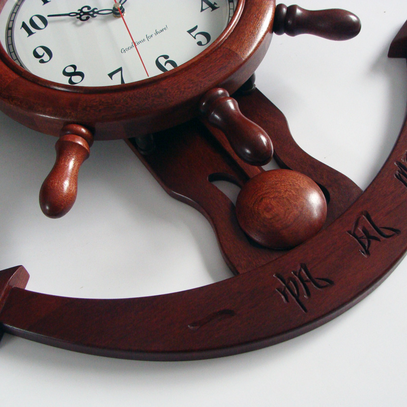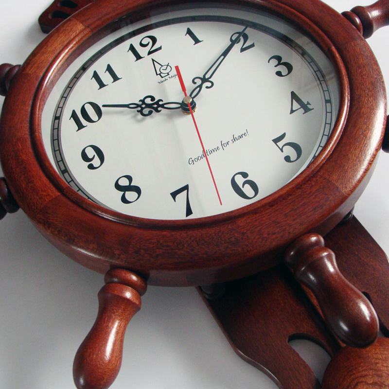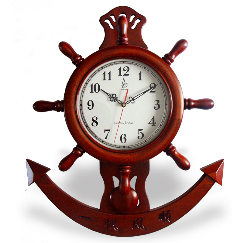 Meishi each solid wood peach wood smooth sailing wall clock watch helmsman Chinese living room vintage silent rudder 6708T
