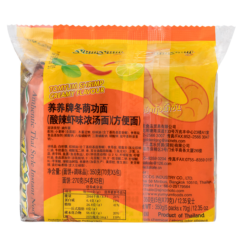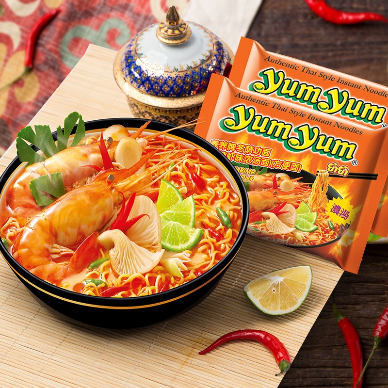 Thailand imported yumyum Yangyang brand Tom Yum Gong instant noodles sour and spicy shrimp flavor thick soup instant noodle ramen breakfast fast food