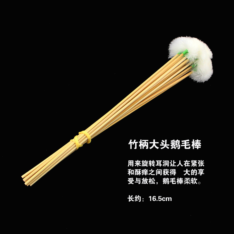 Professional ear picking tools Green line big head goose feather stick Chicken feather stick White crane hair stick Ear scoop ear brush