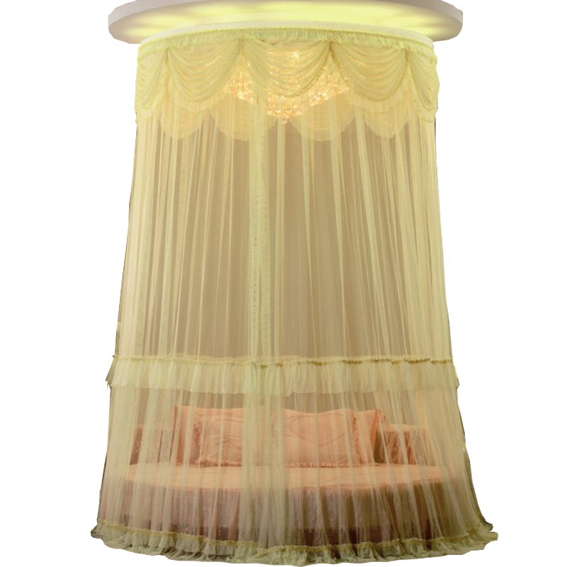 Bedroom Mosquito Net Princess Wind Mosquito Net Hanging Dome Lace Mosquito Net Round Aluminum Alloy Palace Princess Slide Rail Bed Mantle