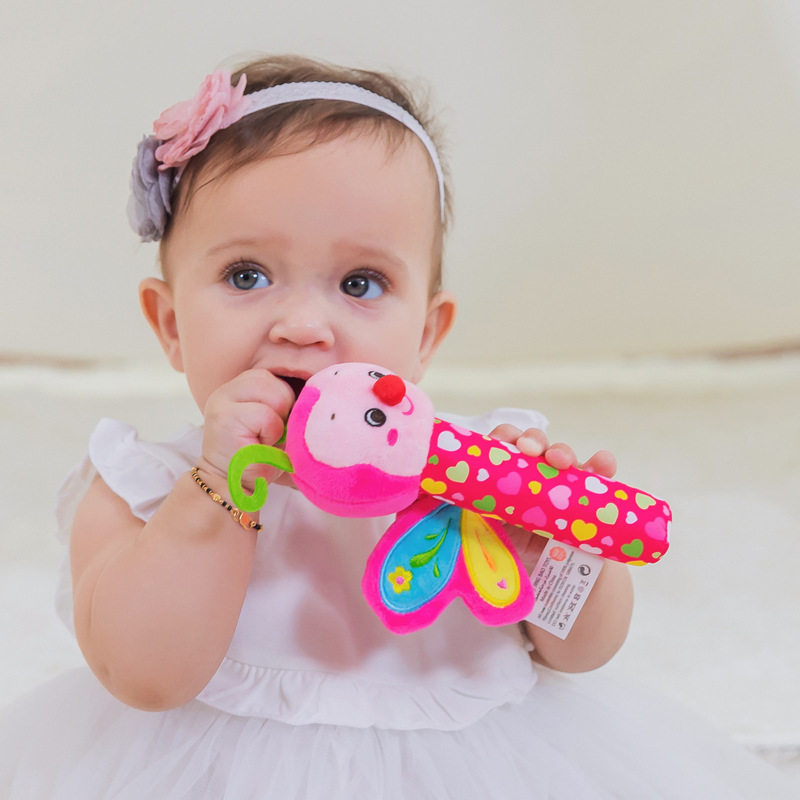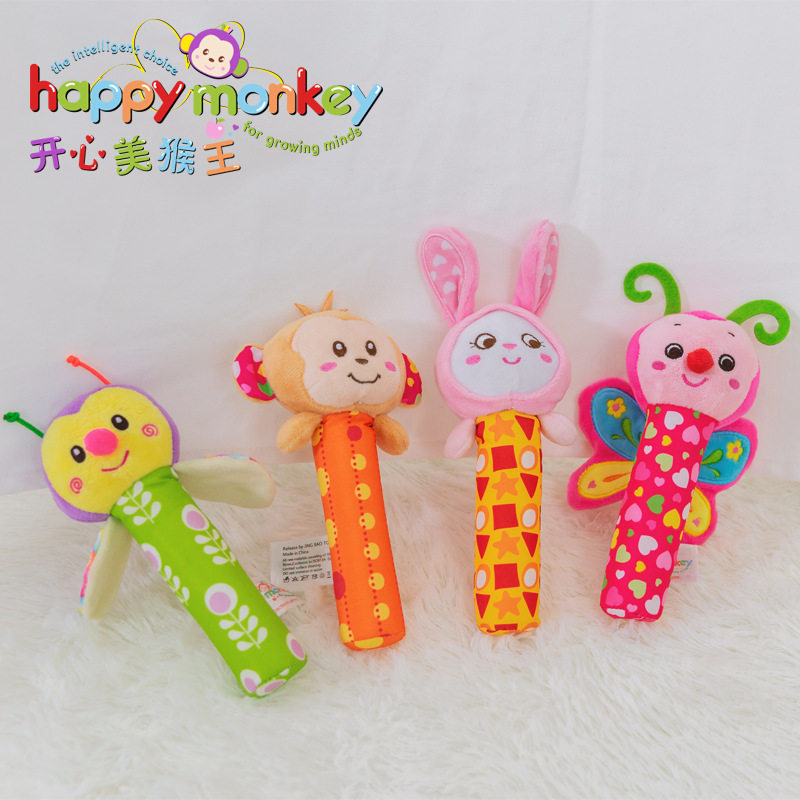 Baby 0-3-6 months Baby hand grip plush rattle can be imported cartoon BB stick pinch call toy 0-1 years old