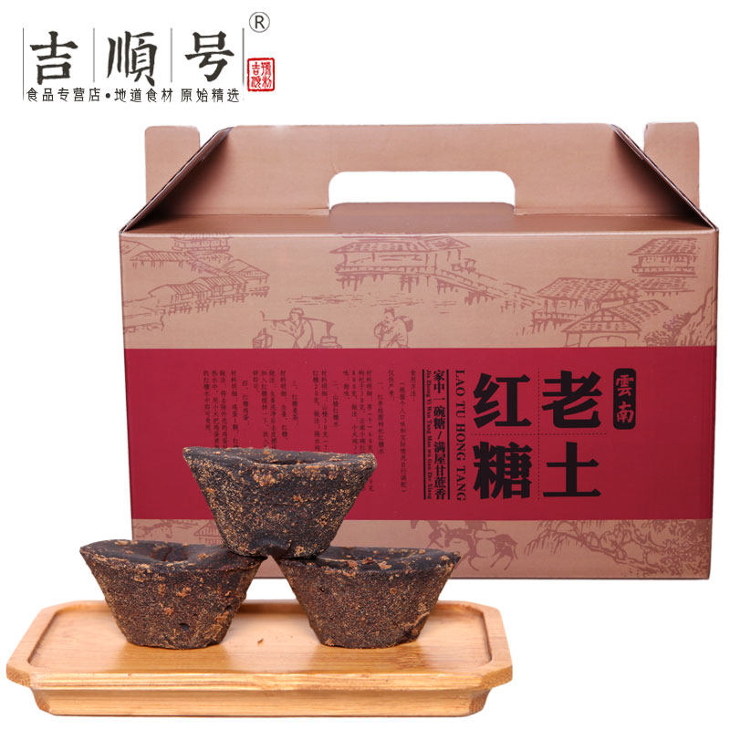 High-quality brown sugar Jishun food ingot brown sugar gift box Yunnan old-fashioned brown sugar brown sugar 400g * 5 bags as a gift
