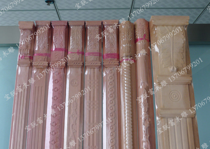 Dongyang wood carving wardrobe Roman column Decorative column line Roman head column Wine cabinet European solid wood column