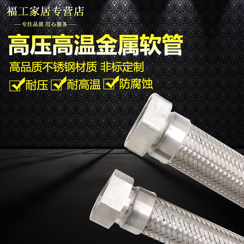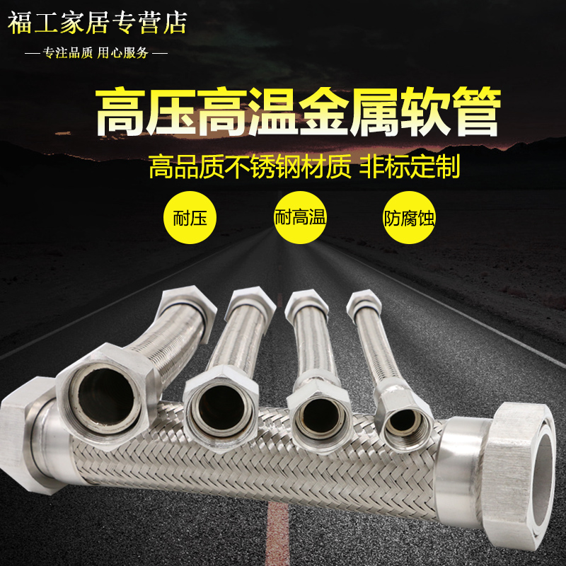 Stainless steel metal hose threaded steam hose high-pressure high-temperature pipe water inlet pipe DN32 braided pipe DN32