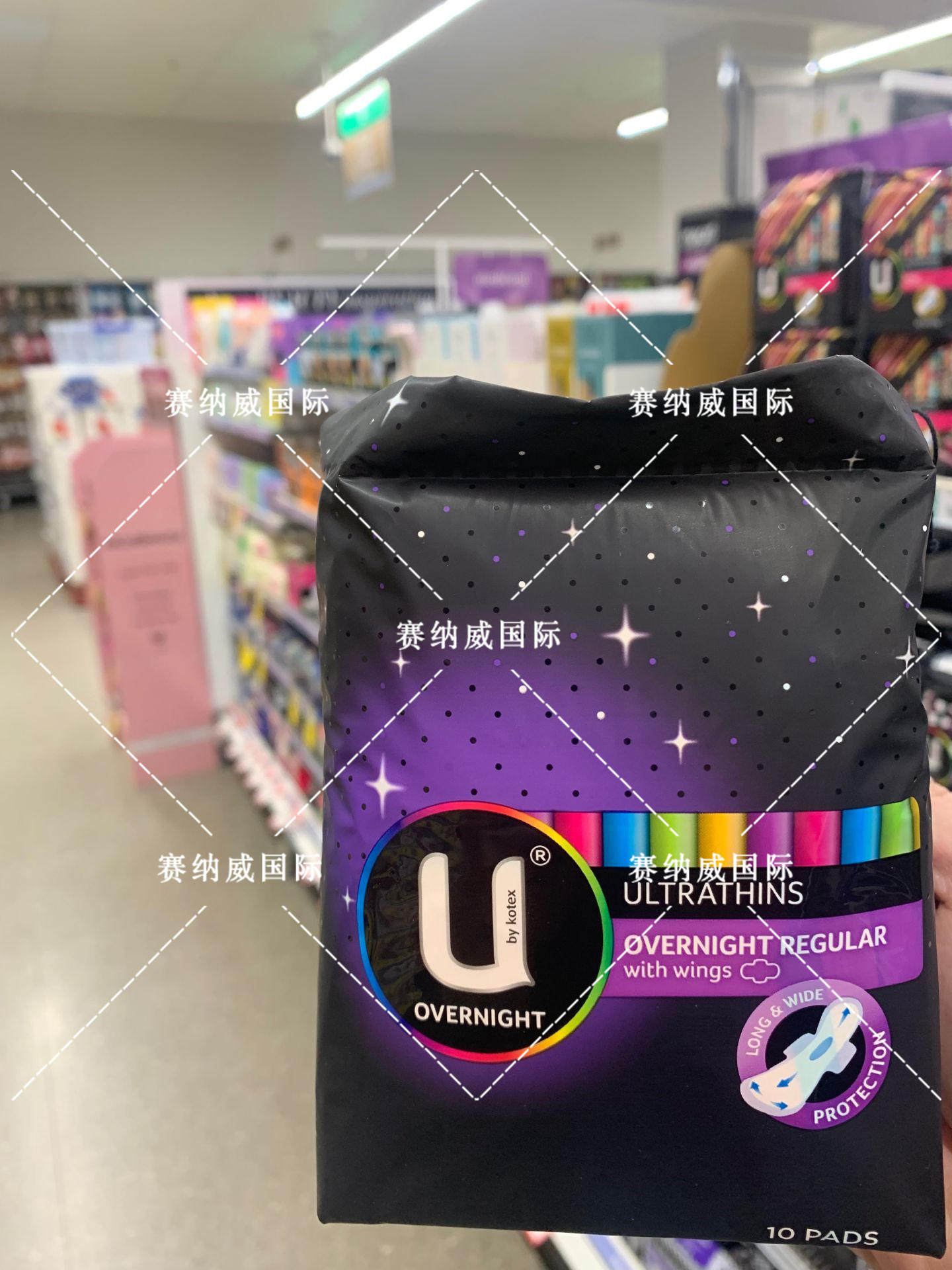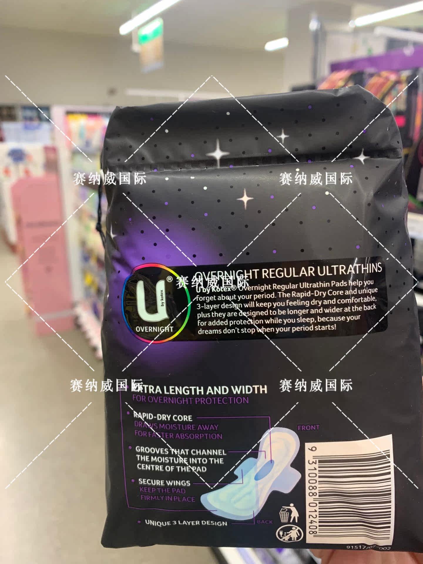 Direct mail Australia delivery U by Kotex night wing sanitary cotton 10 pieces pure cotton stand-alone packaging