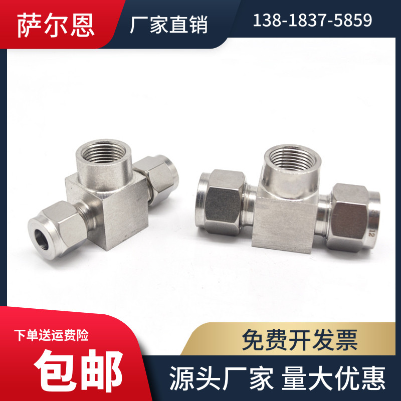 Stainless Steel Tee internal wire Sleeves Tee pressure Meter three-way conversion tee 14 * 1 5 1 4 1 2