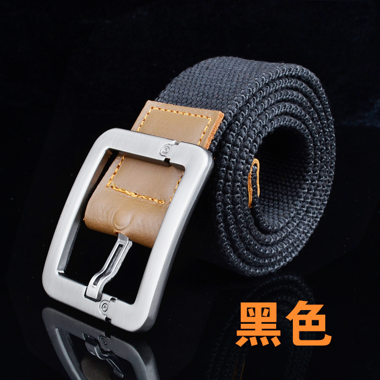 Canvas belt male and female needle buckle metal hole leather strap casual pants with genuine leather bag tail ultra affordable pin buckle belt-Taobao