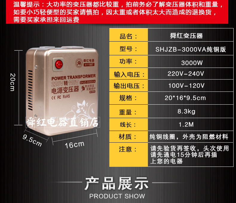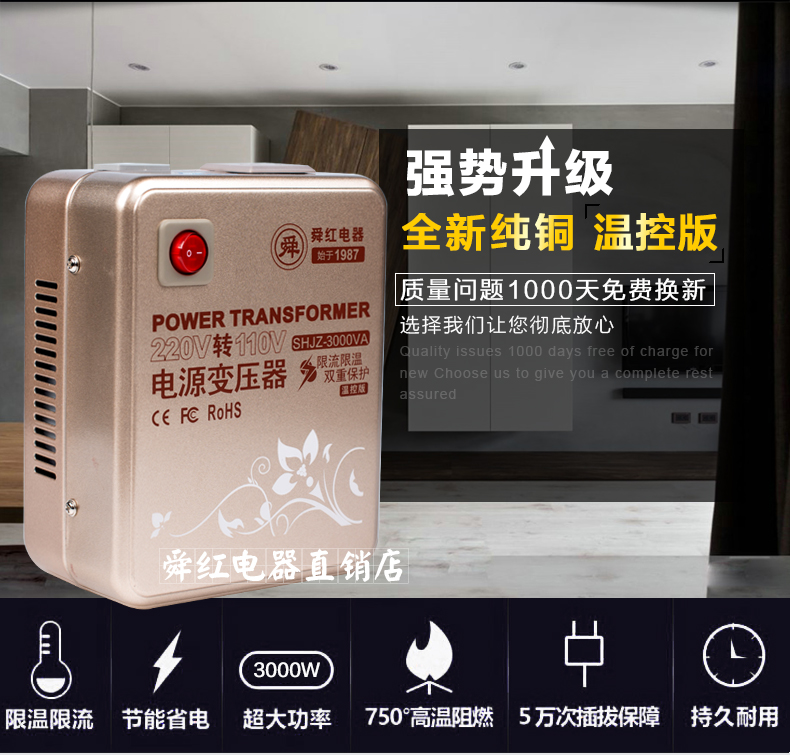 Shunhong transformer pure copper 220v to 110v full power 3000W Shunhong transformer 110V to 220V