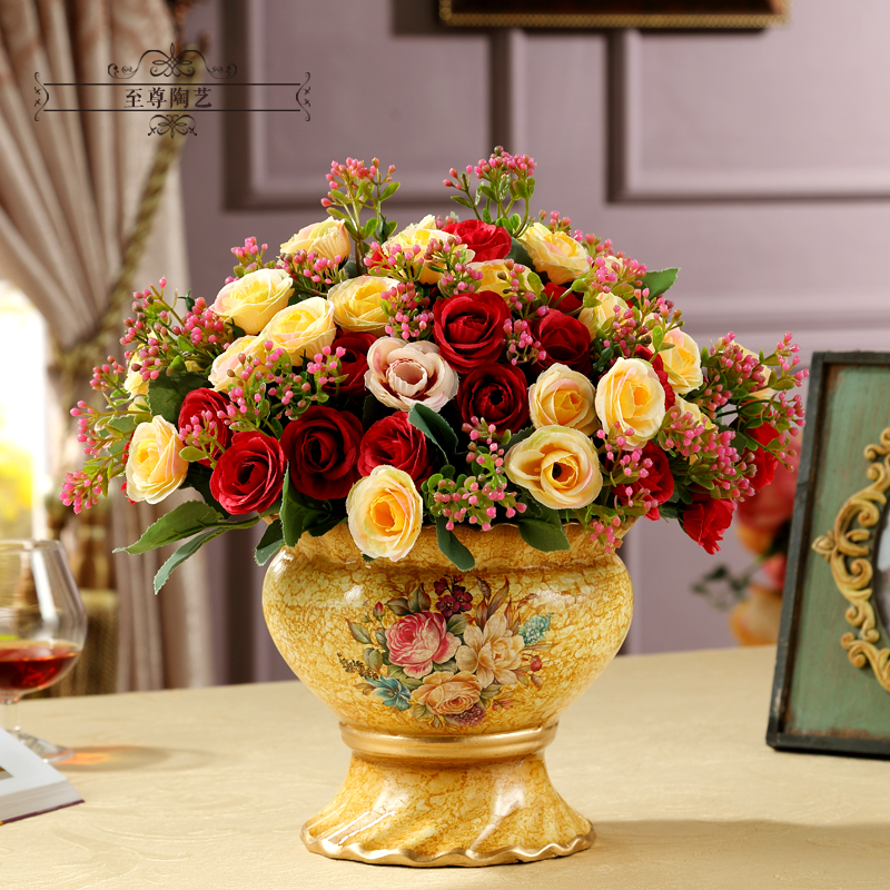 New light elegant vase 6 bouquet New gold vase 6 bouquet of flowers New gold vase 6 bouquet of gold single vase B gold vase 6 bunches of flowers B rich and expensive 6 bunches of flowers double earpiece gold dot blue vase