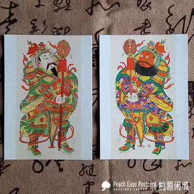 Ancient Chinese traditional Door God Qin Qiong Yuchi Gong Shen Yu Li Yu Yu Li Li wooden wood carving art postcard