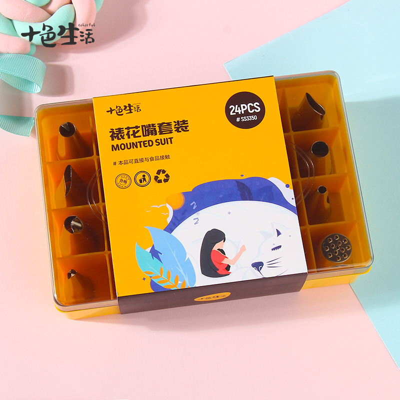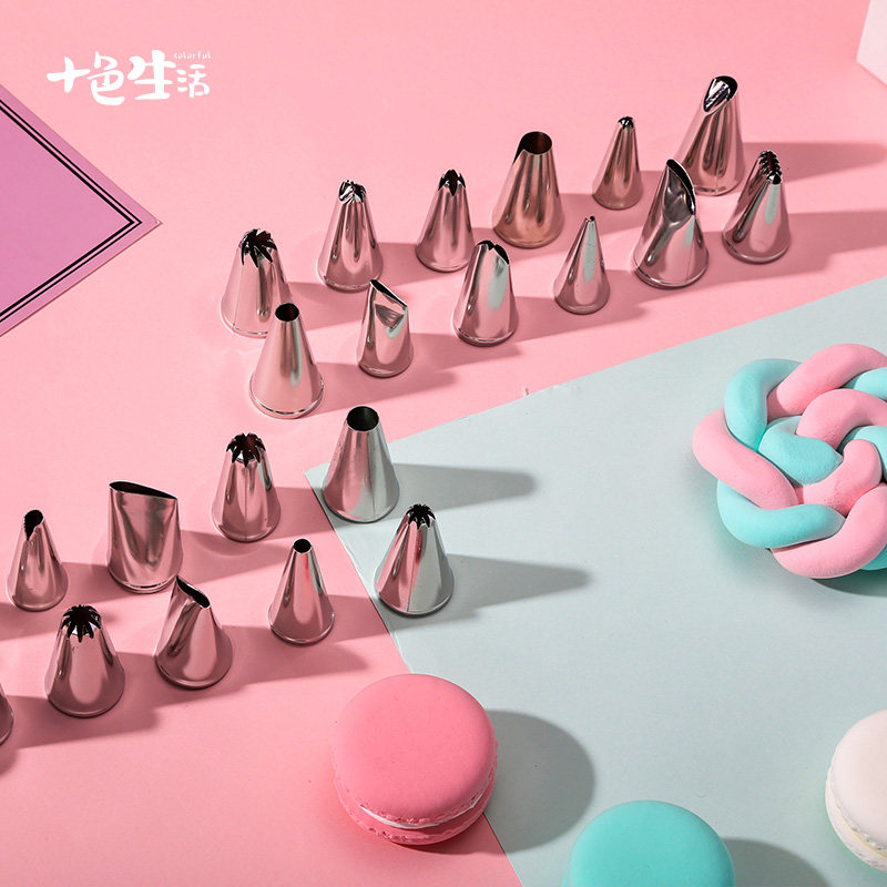 304 Stainless Steel 24 Head Flower Mouth Set Baby Melted Bean Cookie Cake Korean Style Flower Tools Full Set Baking