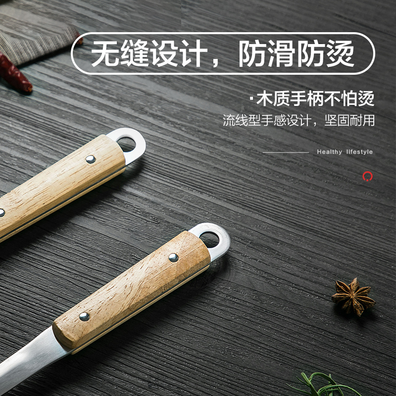 Home stainless steel non-stick pot spatula wooden handle soup spoon leakage cooking shovel Kitchenware set Kitchen household frying spoon