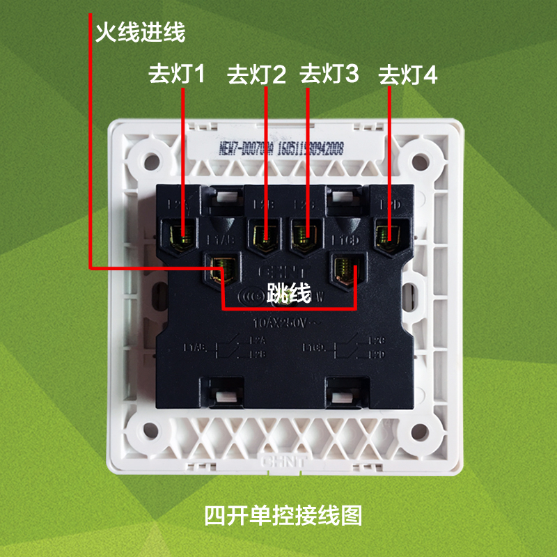 Chint four open single control switch socket 86 type NEW7D4 open 1 control panel four switch control four lights quadruple one open