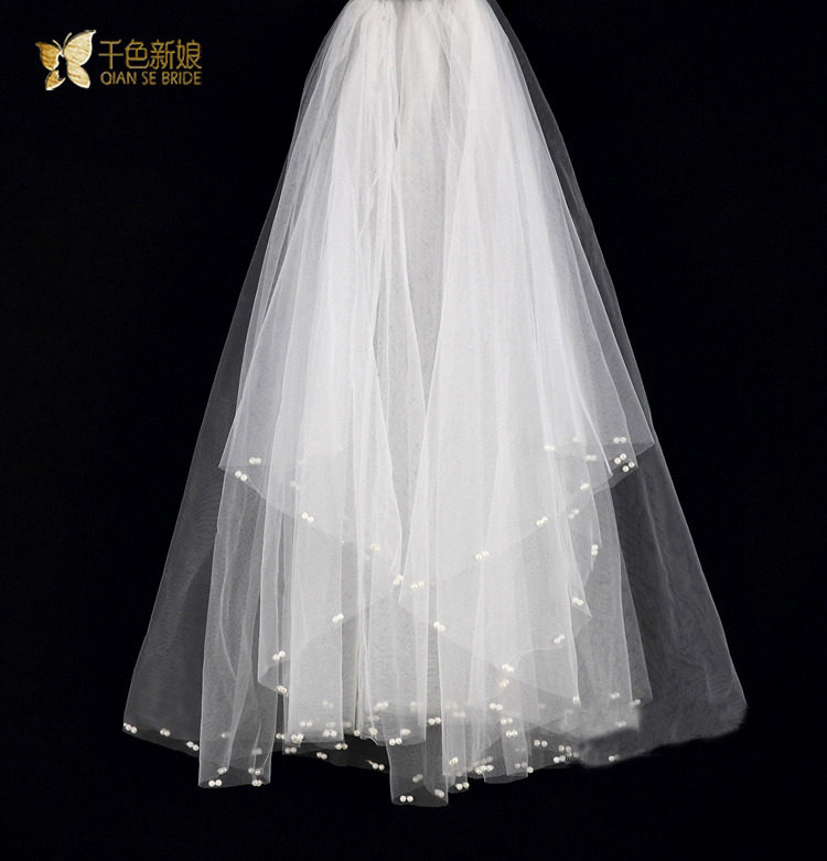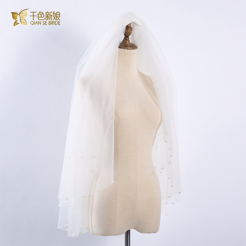 Thousand-color bride's veil Korean style 2022 new short wedding dress super long white pearl multi-layer wedding magic moon