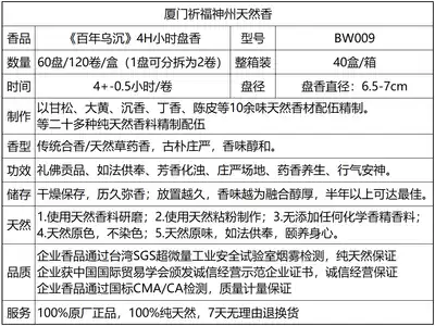 The original factory prayed for the "Hundred Years of Wuxiang" 4 Hours round incense home natural fragrance for Buddha incense BW009