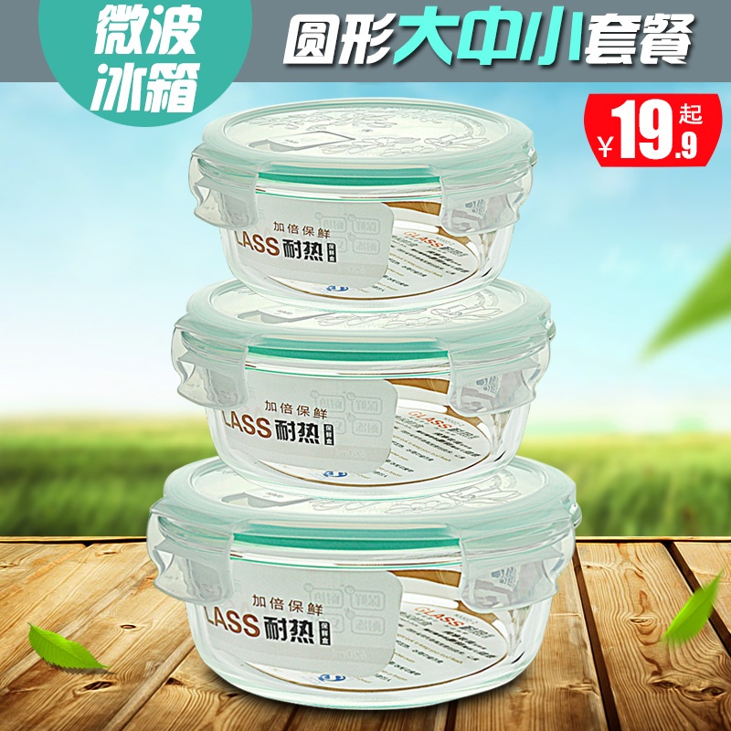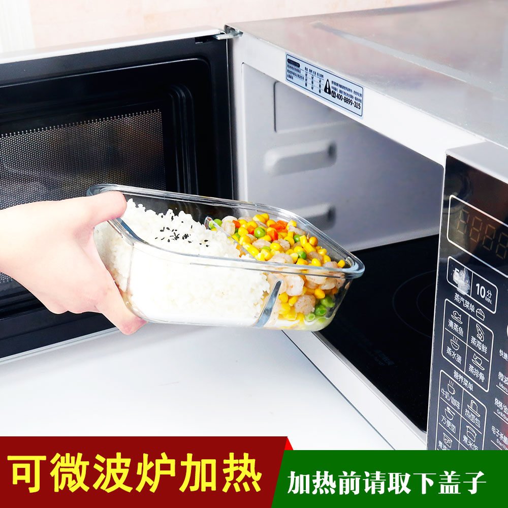 Heat-resistant glass lunch box set fresh-keeping box with lid food-grade sealed lunch box microwave special bowl three-piece set