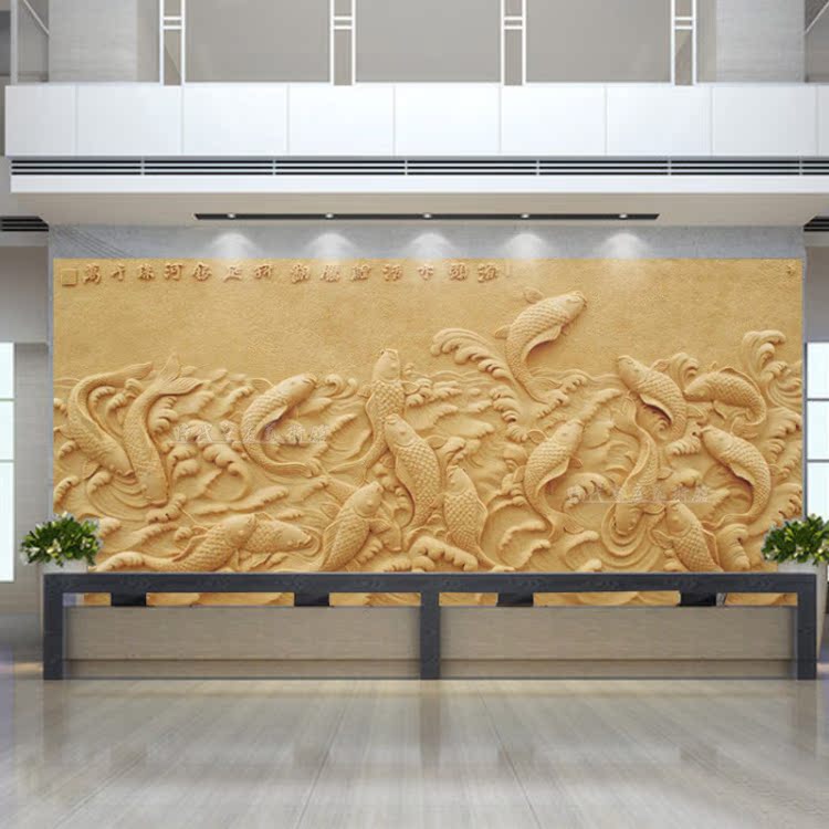 Sandstone Reliefs Mural Background Wall Decorations Logo Wall Decoration Sculpted Fish Leaping Gantry Large Mural hand engraving