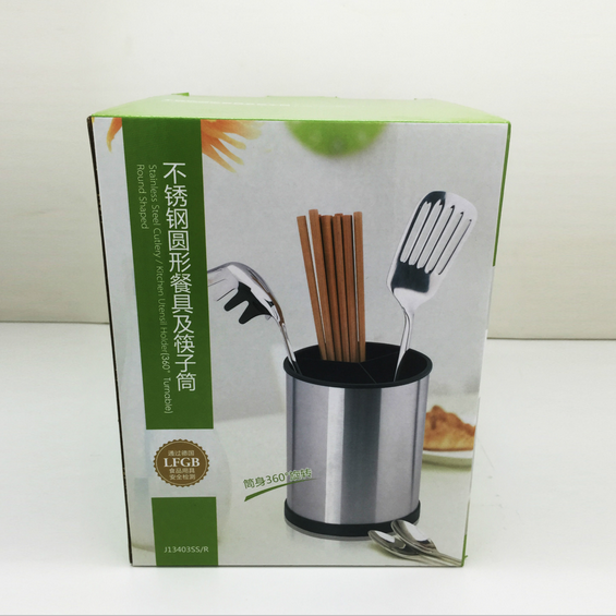 Imported 304 stainless steel rotating chopstick barrel chopstick cage hanging chopstick box Double chopstick holder Chopstick basket tableware storage drain