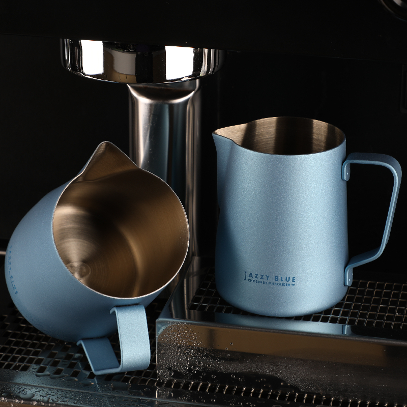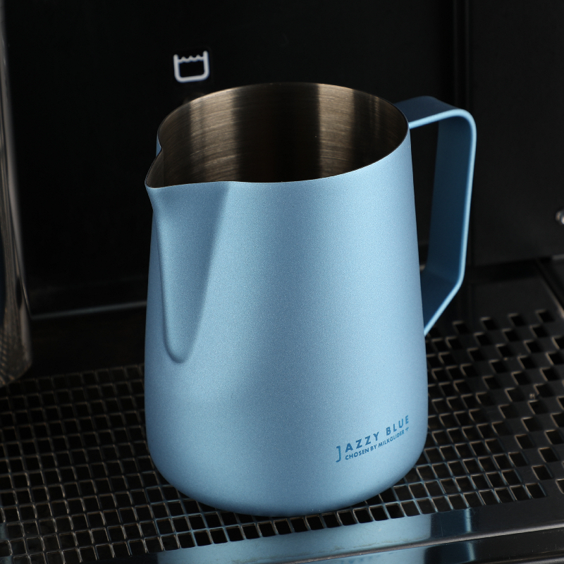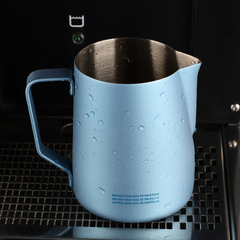 RW pull flower cylinder Teflon pull flower cup Stainless steel pointed mouth embossed fancy coffee milk cylinder Milk foam cup Heavy feel