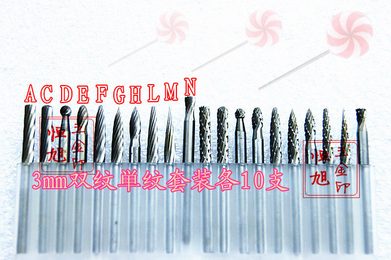 Conical pointed head M03 Conical dome L03 Torch-shaped H03 Arc-shaped pointed head G03 Arc-shaped round head F03 Spherical D03 Cylindrical ball head C03 Cylindrical A03 Set of 20 cones
