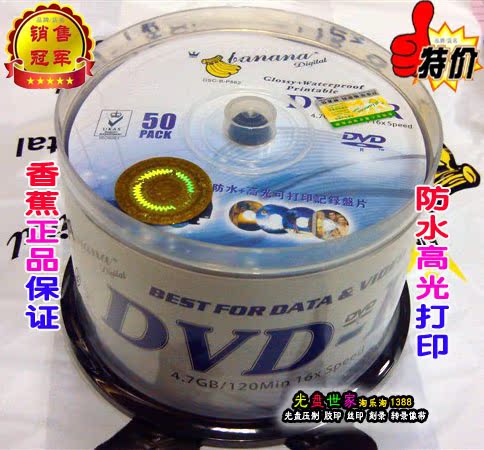 Banana Discs high light waterproof printable DVD-R blank burn CDs 4 7GB 16X A grade