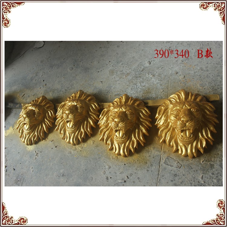 Sandstone Sculptures Lions Heads Spray Pool Sandstone Reliefs TV Background Wall Eurostyle Pendant Hotel Villa Renovation