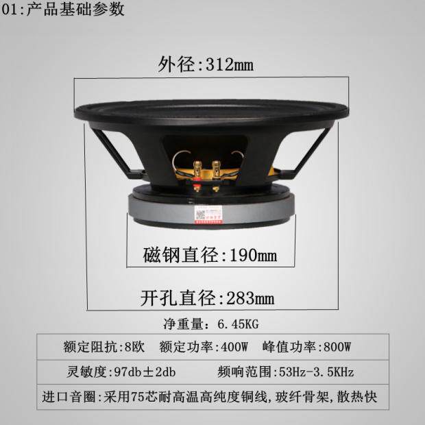 RKEK 12-inch full frequency mid-bass speaker 170190 magnetic 75 core DIY audio KTV high-power speaker