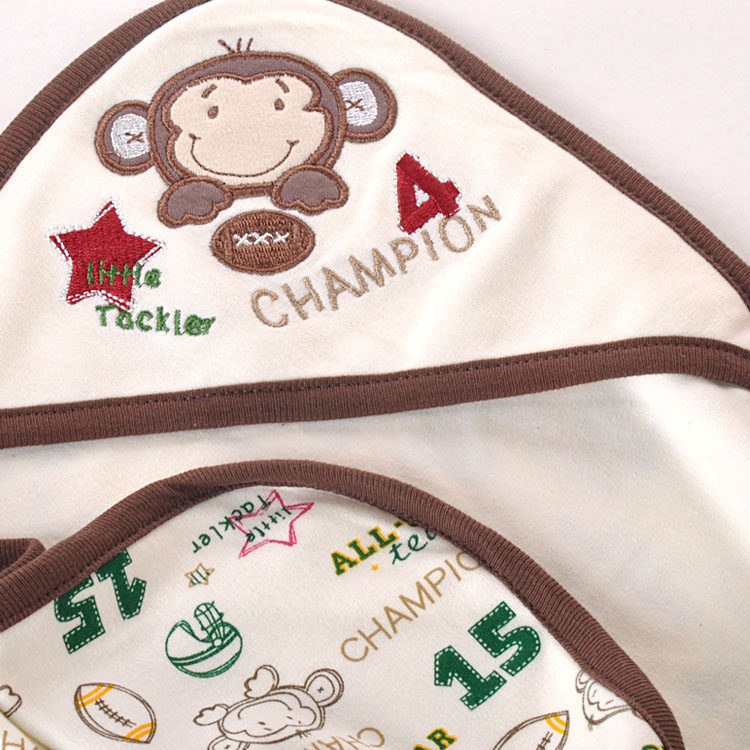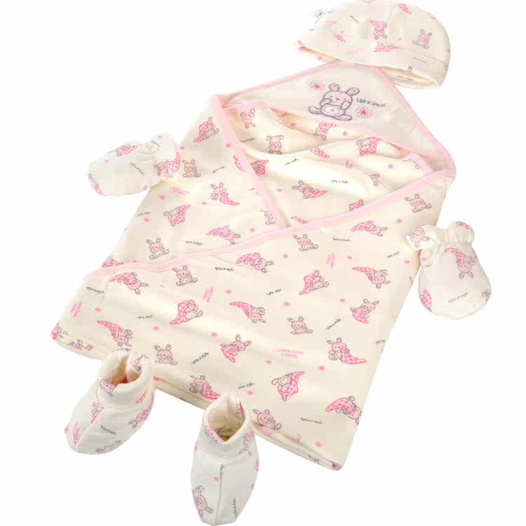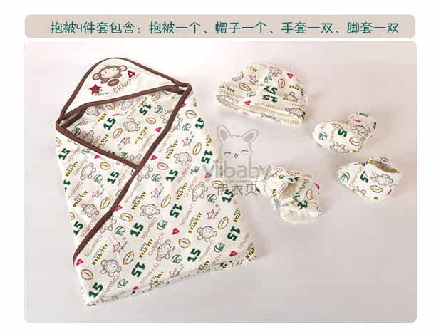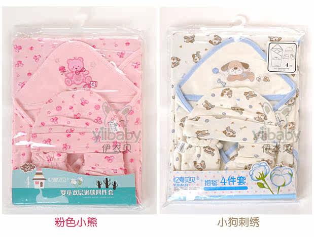 4 pieces of cover baby double layer pure cotton huddled by foot cover anti-grip glove newborn embroidery bag by baby swaddle