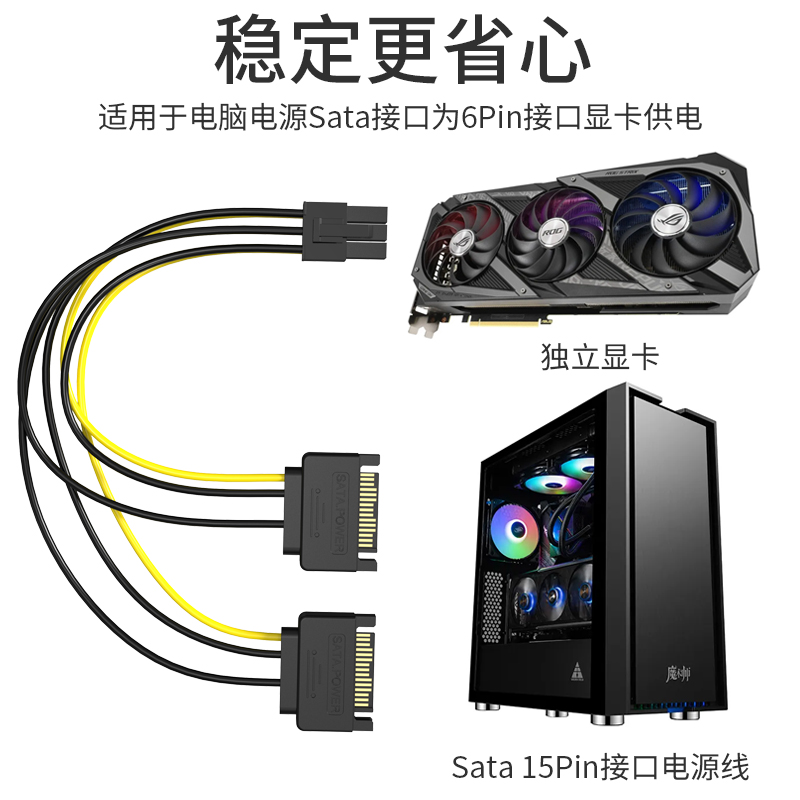 Single SATA15P turn 6P graphics card power supply line double SATA15P turn 6P graphics card power supply line