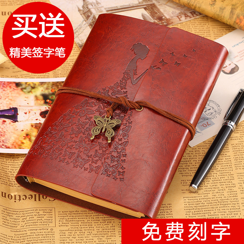 Retro Kraft Paper Notepad Trumpet Carry-on Korea Personality Creative Hand Ledger Day Mark Bento Woman Travel Wind Art Refined Blank Handbill a6 Loose-leaf Notebook text with college student pocket book