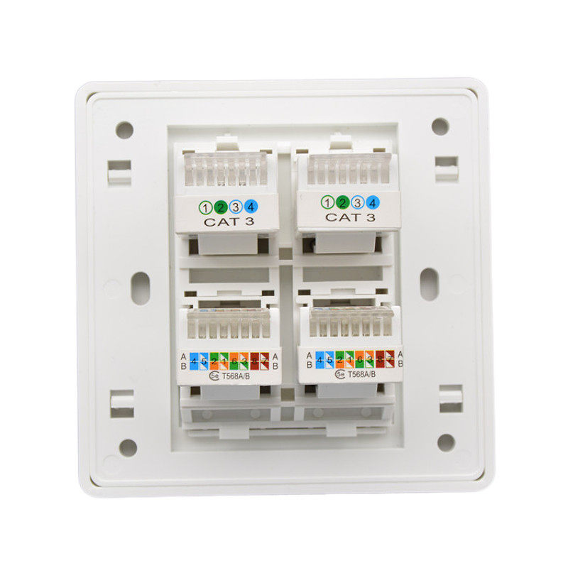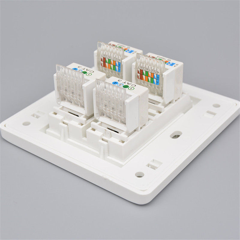 86-type four-port dual-network dual-telephone socket 2 RJ45 computer network cables 2 CAT3 telephone voice panels