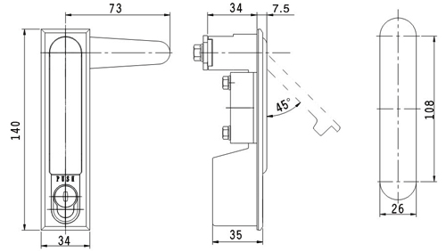 Electric switch cabinet door lock plate large black lock rocking handle lock rectangular lock flat lock MS818-1S-1C490480