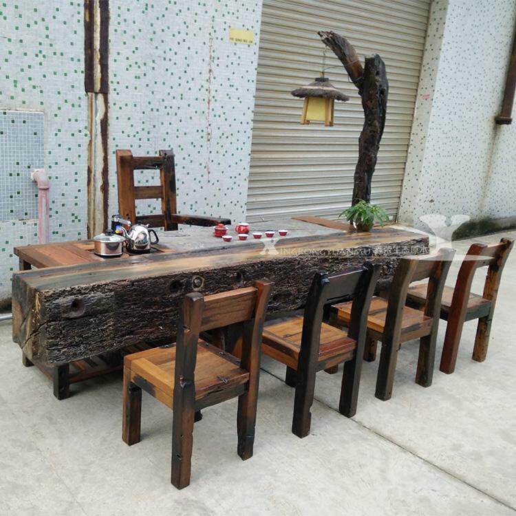 Old boat wood furniture boat wood furniture antique tea table and chair combination Kung Fu tea table balcony Chinese tea table outdoor tea art