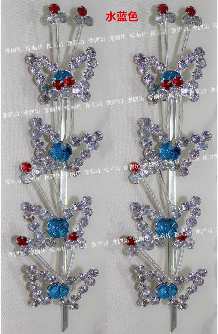 Drama head face Peking opera Yue opera headdress opera headdress colorful wooden diamond rhinestone butterfly string flower butterfly row temple strip